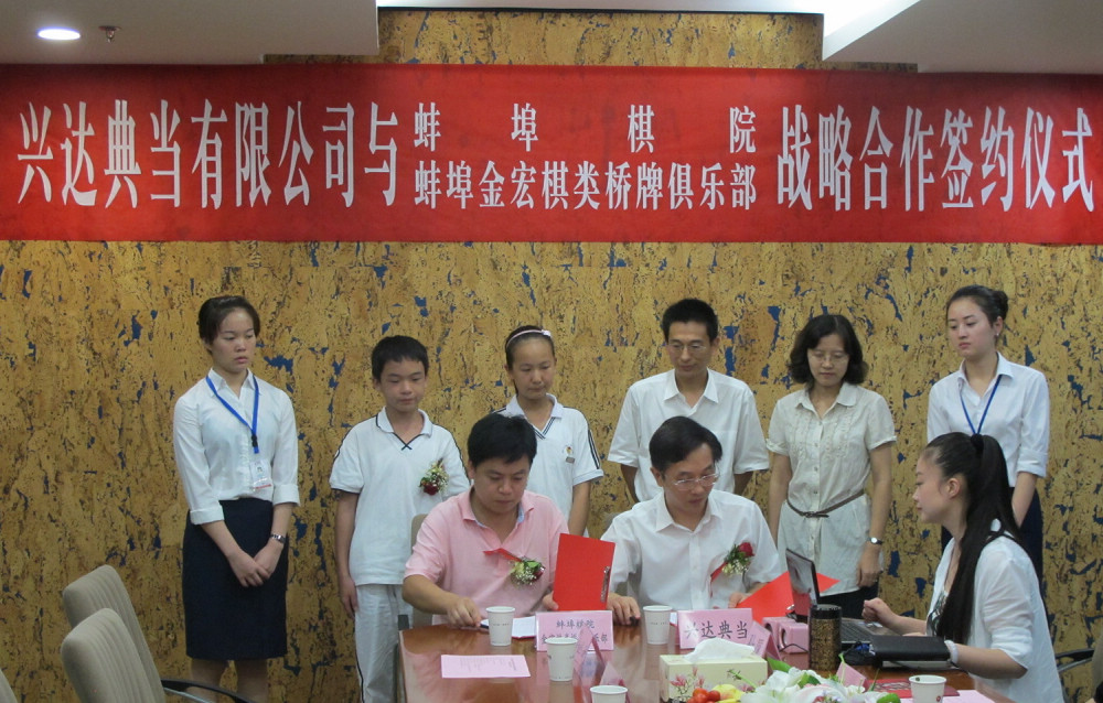 協(xié)議約定,雙方充分發(fā)揮自身優(yōu)勢,互助互補、實現(xiàn)共贏,興達典當冠名蚌埠棋院社、金宏棋類橋牌俱樂部十年,每年向其提供一定數(shù)額贊助費,蚌埠棋院社及金宏棋類橋牌俱樂部將在訓練、比賽以及網(wǎng)站上給予興達典當相關(guān)宣傳和報道。
