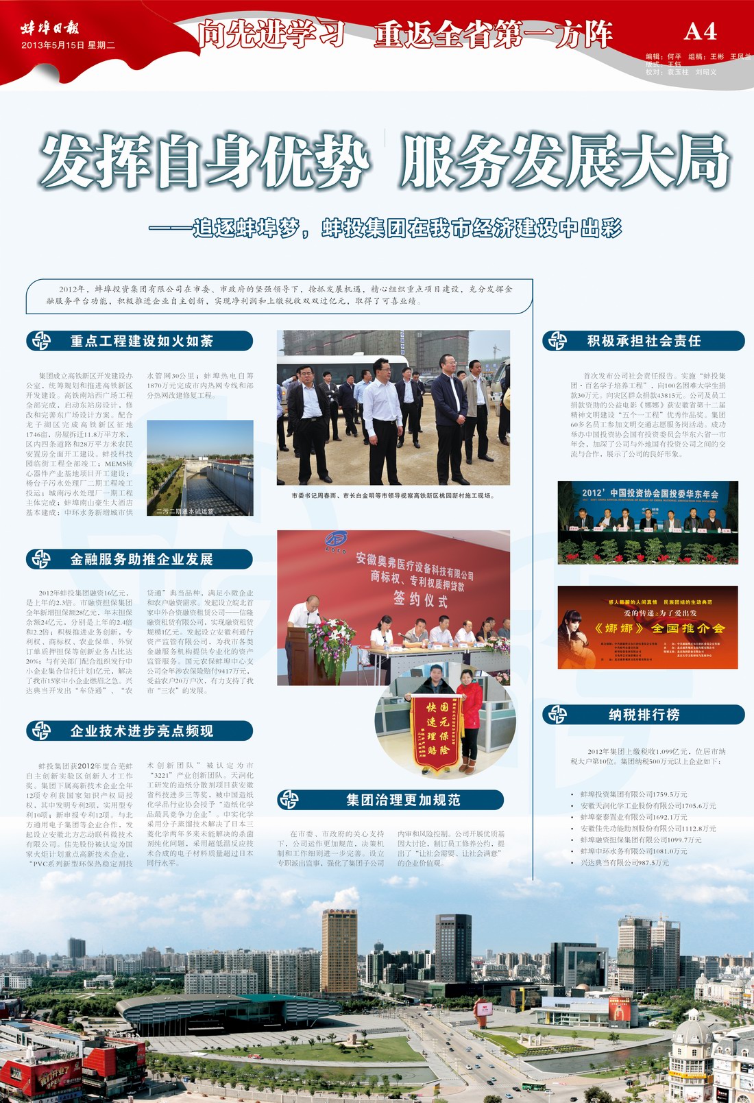 蚌投集團在我市經(jīng)濟建設中出彩—蚌埠日報先進專版